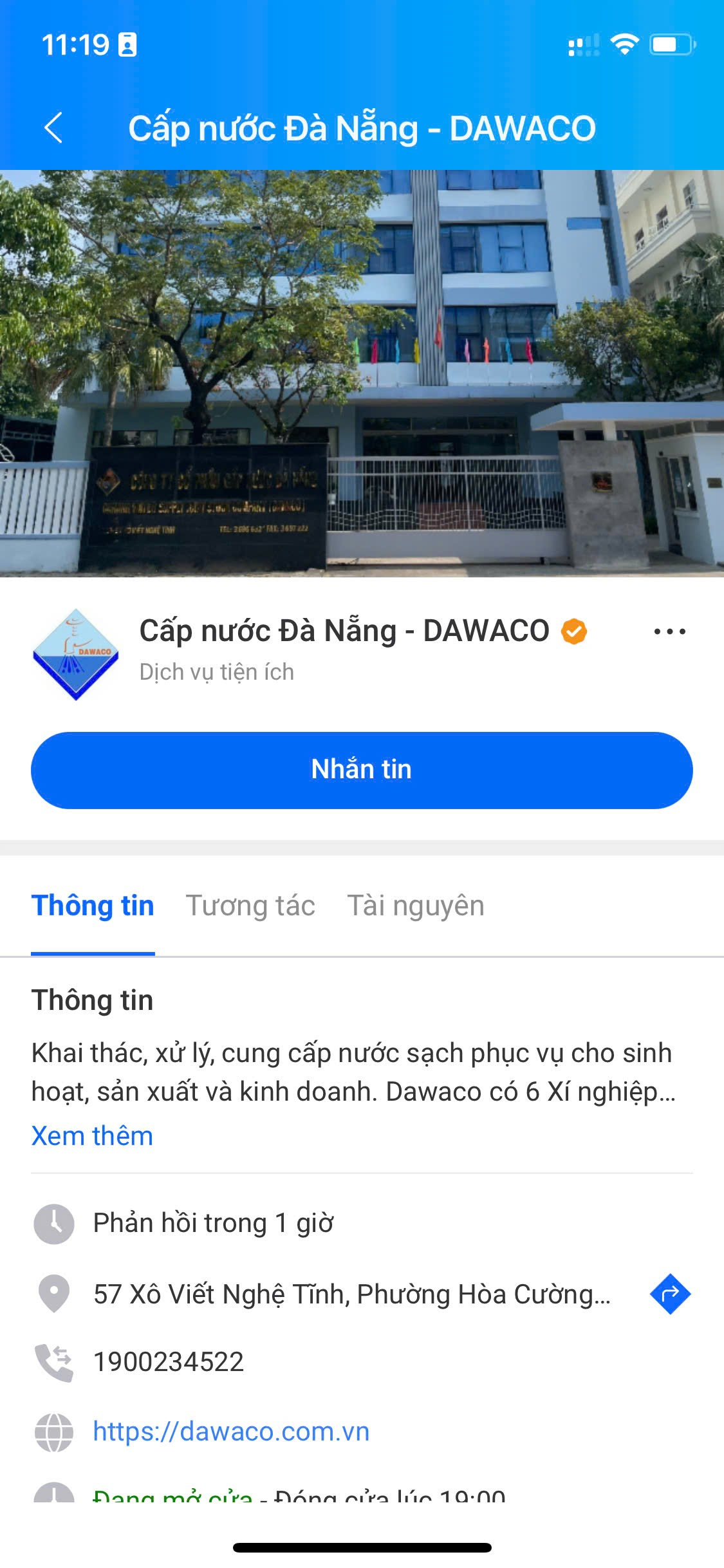 – Zalo OA Công ty (có tick cam xác thực): Cấp nước Đà Nẵng – DAWACO